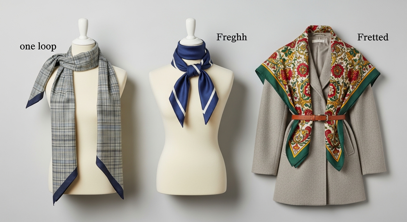 - 봄/가을: 환절기에는 가볍고 부드러운 실크 스카프나 얇은 울 머플러가 제격입니다. 가방에 리본처럼 묶거나, 헤어 밴드, 혹은 목에 가볍게 감아 프렌치 시크룩을 연출해보세요.